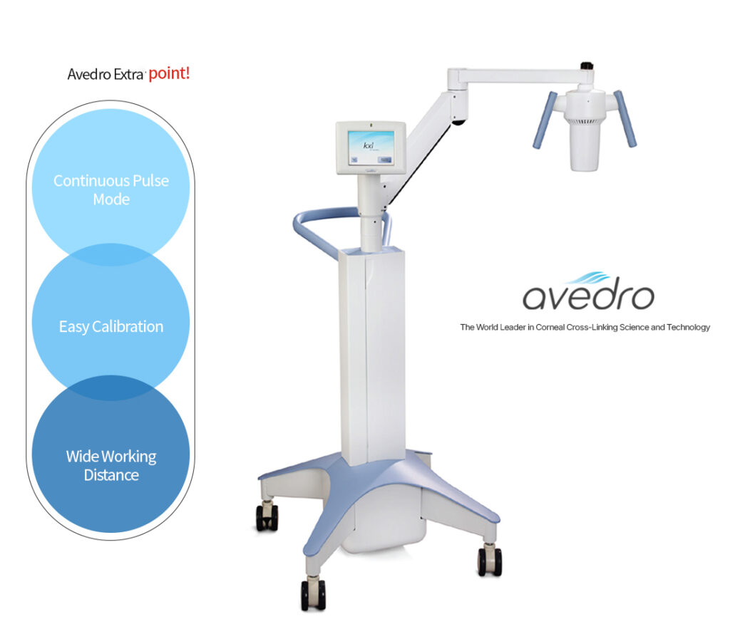 The Avedro Extra device is a proven device currently approved in over 50 countries worldwide for the treatment and prevention of keratoconus and keratectasia.