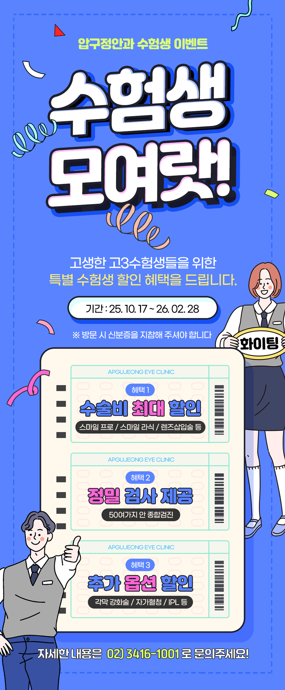 이벤트 수험생 모두 모여랏! 26학년도 수험생 이벤트! 작성자 압구정안과의원 작성일 2025-11-03 08:19 조회 1585 워드프레스 내장 에디터 : 좋아요 0 싫어요 0 인쇄 « 의사 김준현TV 쇼츠 1000만뷰 EVENT 더욱 밝게 빛날 해피 2026 할인 EVENT » 목록보기 Powered by KBoard