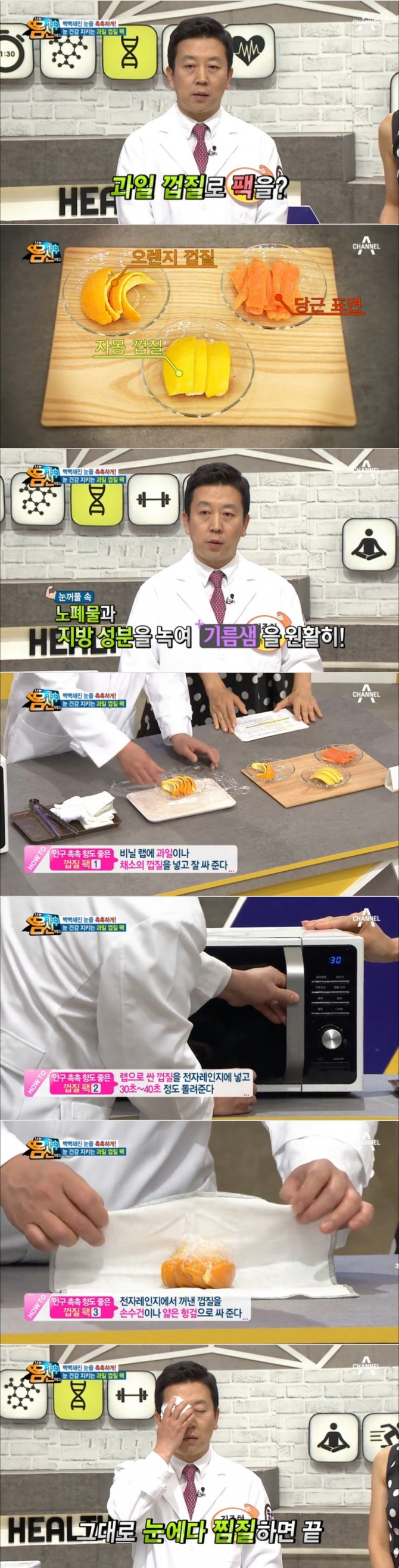 '과일껍질팩' 온찜질 방법을 공개해 눈길을 끌었다. 사진=채널A 방송 캡처